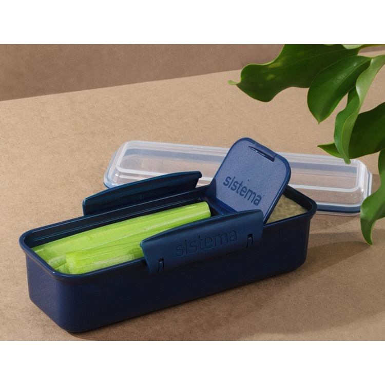 Matlåda, avlång, med fack, 410 ml, Återanvänd Plast, SNACK ATTACK RENEW, 19 x 8 x H 6 cm, Blå
