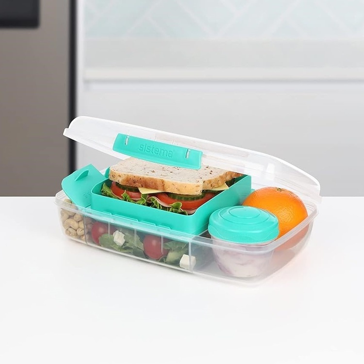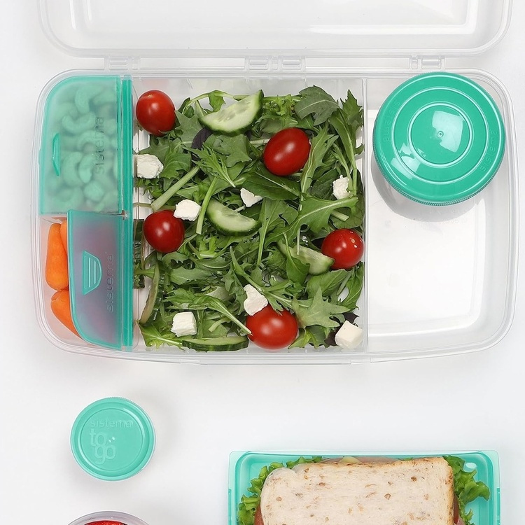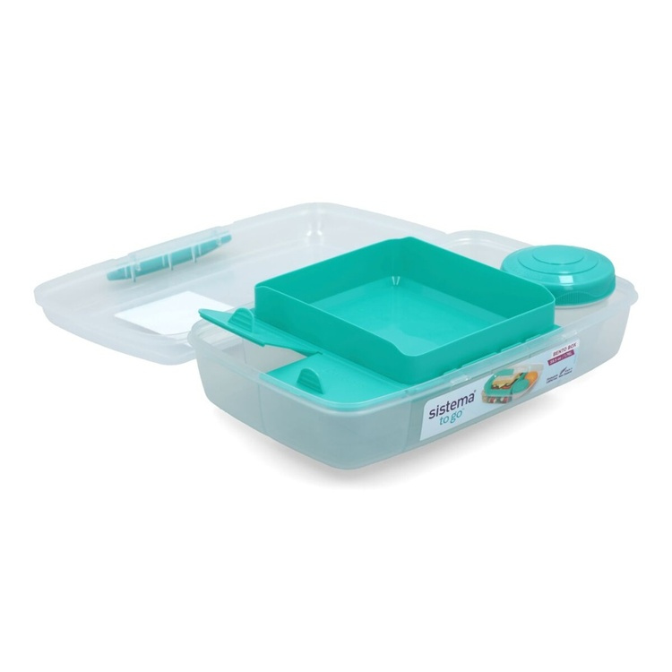 Matlåda med fack och burk, 1,76 Liter, SISTEMA BENTO BOX TO GO, Mintgrön