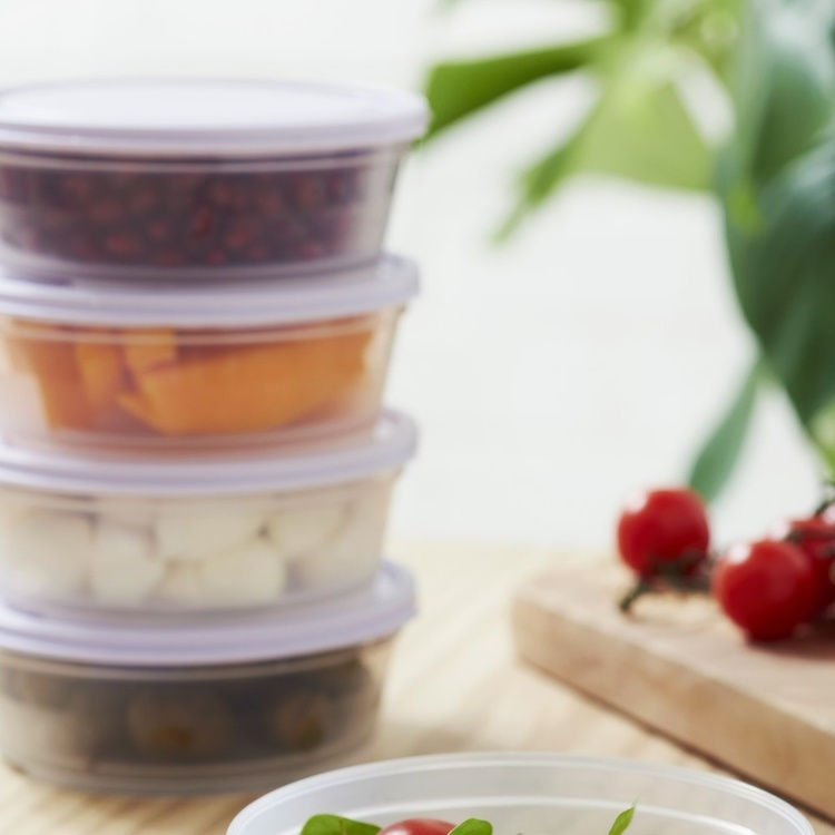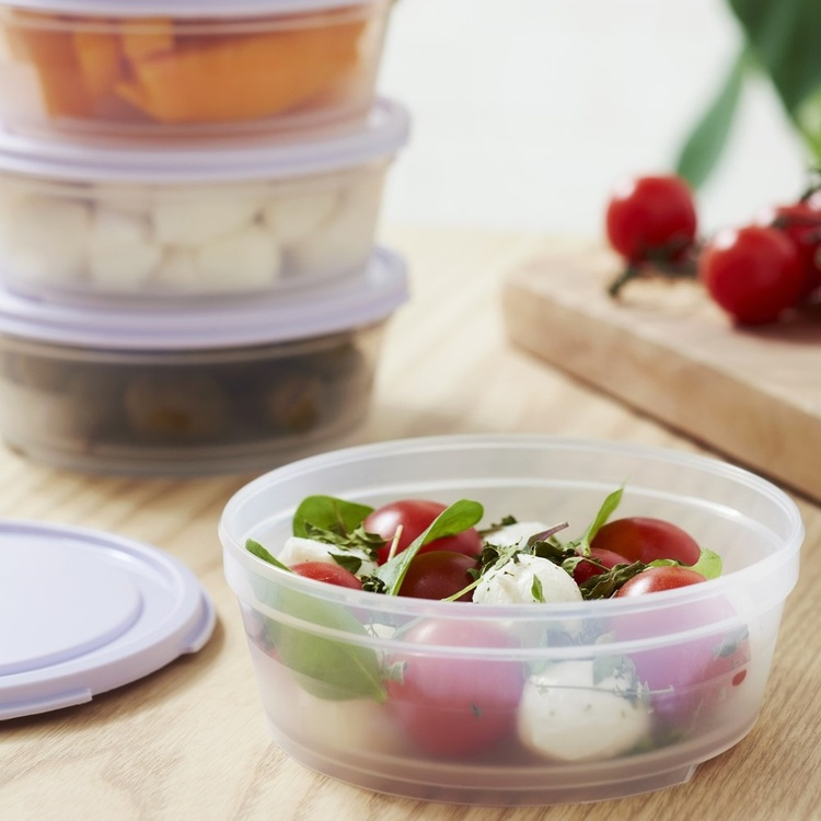 Liten rund matlåda som är idealisk för kylförvaring och att använda som lunchlåda.