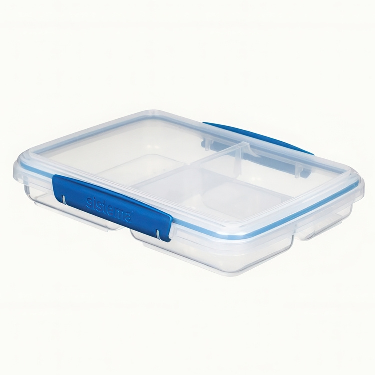 Matlåda, Tredelad, 0,82 liter, SISTEMA MULTI SPLIT TO GO, 23 x 17 x H 4,3 cm, Klar / Blå