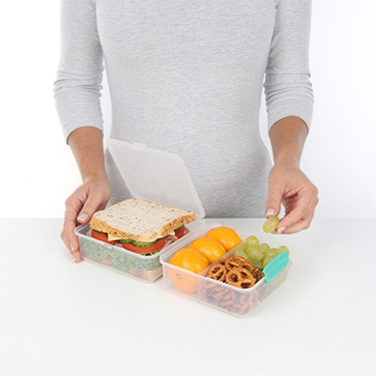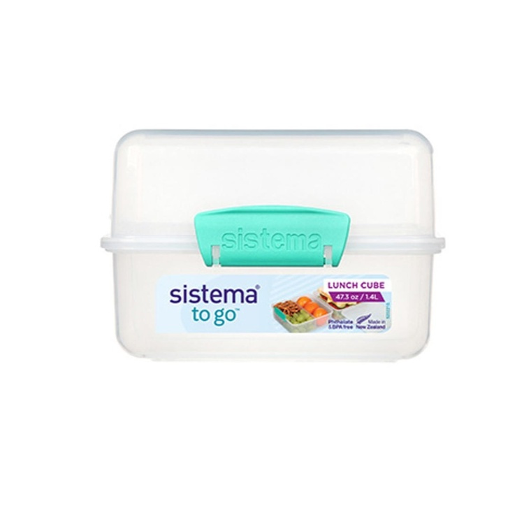 Matlåda uppdelad i fack, 1,4 L, LUNCH CUBE TO GO, Transparent / Mint
