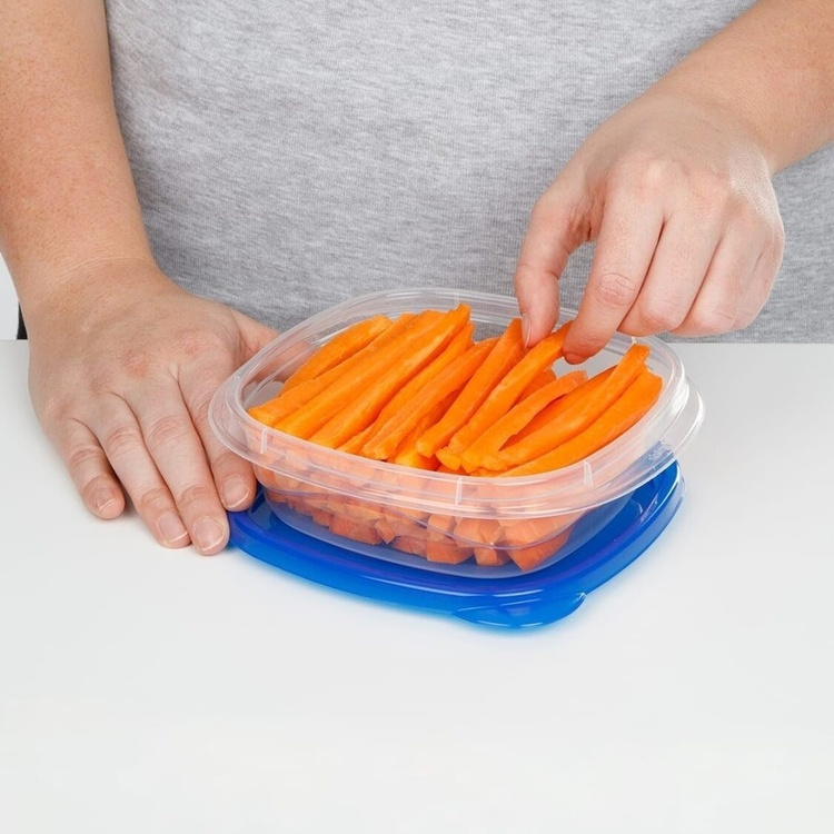 Artnr: 42196 Lagersaldo: 4 Bredd: 17.5 Djup: 16.0 Höjd: 5.0 Material: BPA-fri Polypropylene Volym: 1400.0 Färg: Transparent med blå lock.