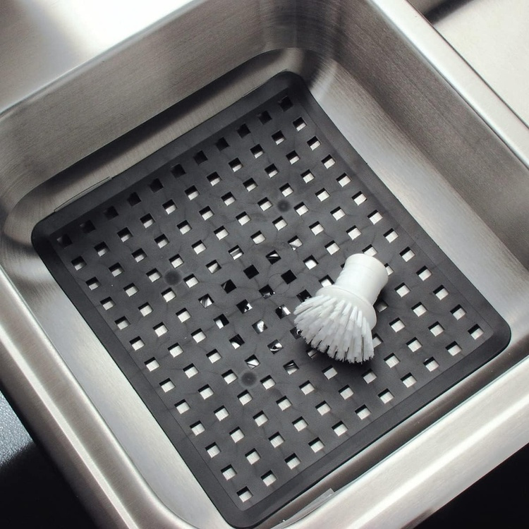 Lägg mattan i botten av diskhon så bildar den ett skydd mot det hårda underlaget.