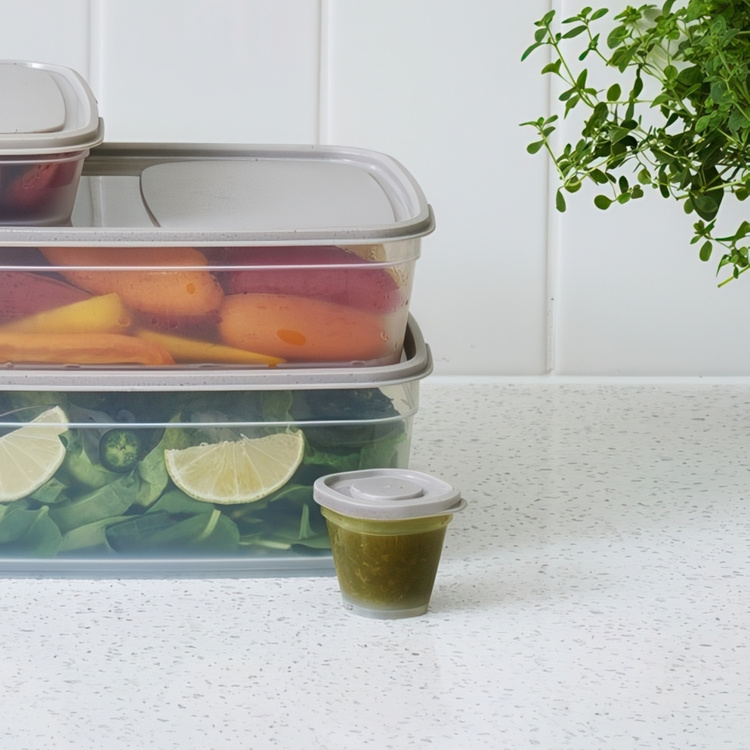 Lufttät behållare som kan staplas i varandra om dom är tomma och på varandra i kylskåpet. Burken är enkel att ta med sig till skolan, till jobbet, på utflykten etc.