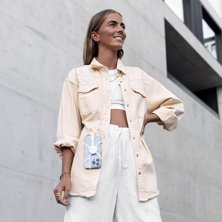 Mobilhalsbandets mobilhållare är tillverkad av ett mjukt och slitstarkt silikonmaterial med stretch. Den smart designade hållaren är inte i vägen för kameror på baksidan eller selfiekameran på framsidan. Den blockerar inte heller knapparna på sidan eller hindrar funktioner på touchskärmen.