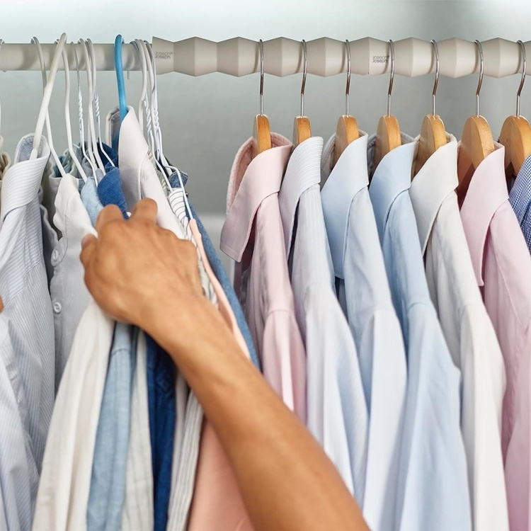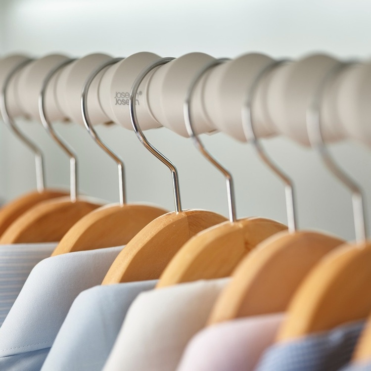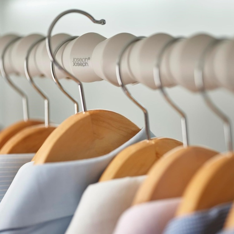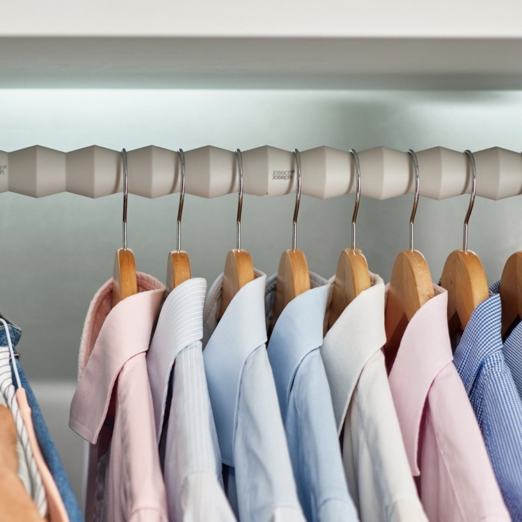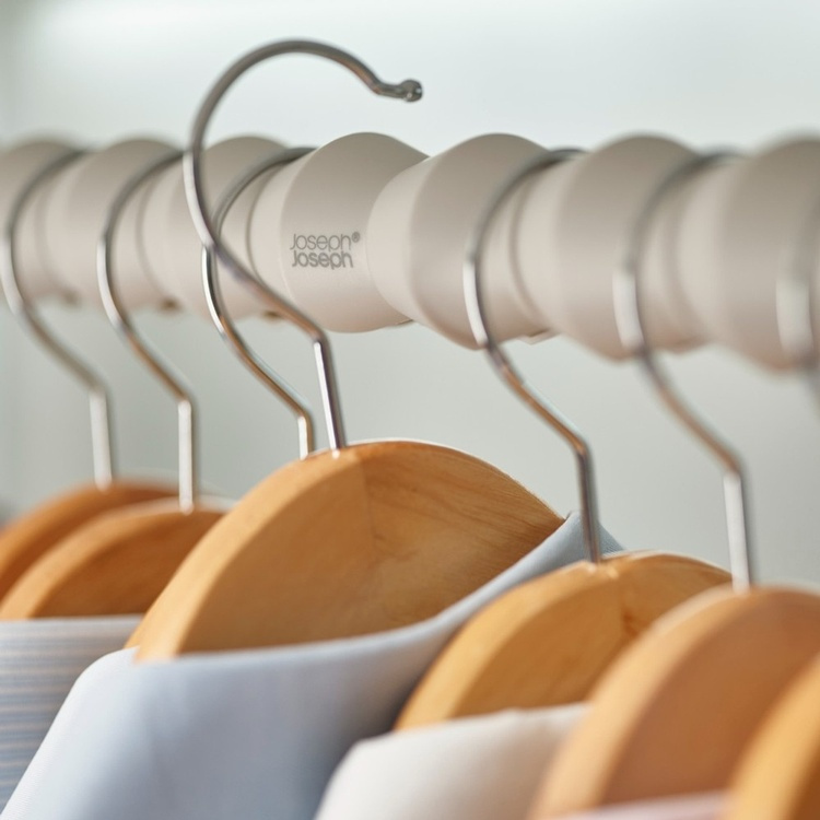 Orderly Rail Spacer från Joseph Joseph gör att galgarna hänger jämt separerade.
