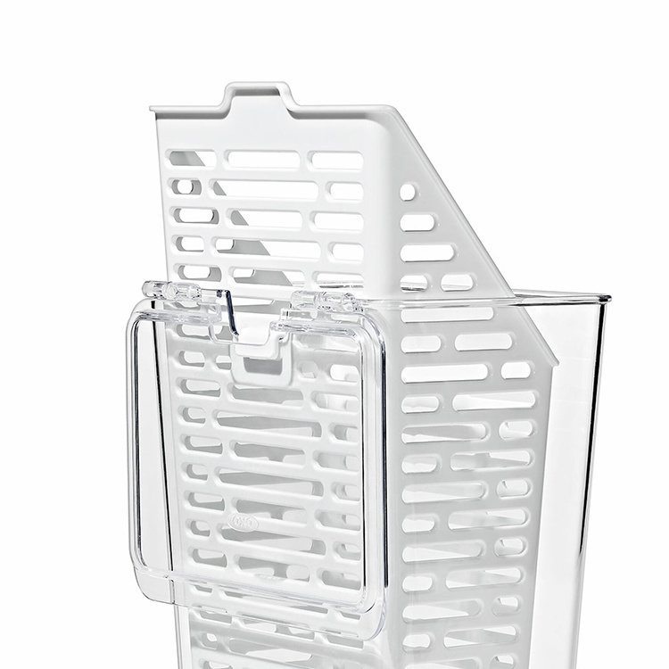 Örtbehållarens innerkorg är utformad med ett ventilationsmönster som ger god luftcirkulation. Det bidrar till att hålla örterna fräscha genom att minska risken för kondens och mögel. Korgen kan enkelt lyftas ur och hängas upp, vilket gör det smidigt att komma åt örterna när du lagar mat.Platsbesparande design för kylskåpet