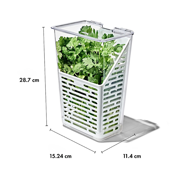 Örtbehållaren för kylskåpet är utformad för att skapa bästa möjliga miljö för färska örter i kylskåpet. Oavsett om du vill förvara ömtåliga örter som persilja, koriander och dill eller mer robusta sorter som timjan och salvia, hjälper den här smarta behållaren dig att bevara smaken och fräschören längre. Tack vare sin genomtänkta design fungerar den även utmärkt för grönsaker som sparris, selleri och salladslök.