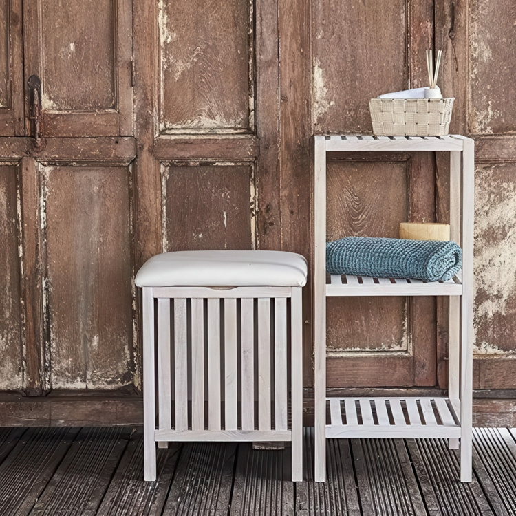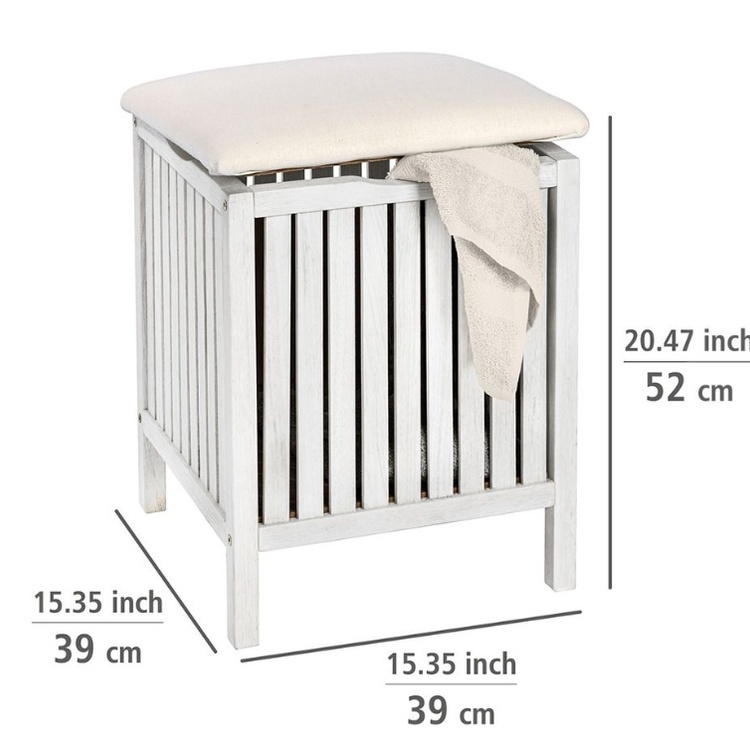 Pall i valnöt med förvaring, NORWAY, 39 x 39 x H 52cm, Vit-kalkad / offwhite