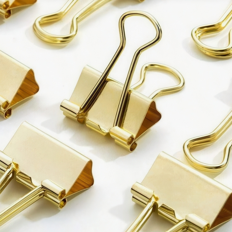 Få ordning på dina papper, kvitton och att-göra-listor med dessa stilfulla klämmor i vacker guldfinish. Perfekta för att hålla allt organiserat samtidigt som de ger en touch av lyx till ditt skrivbord. -