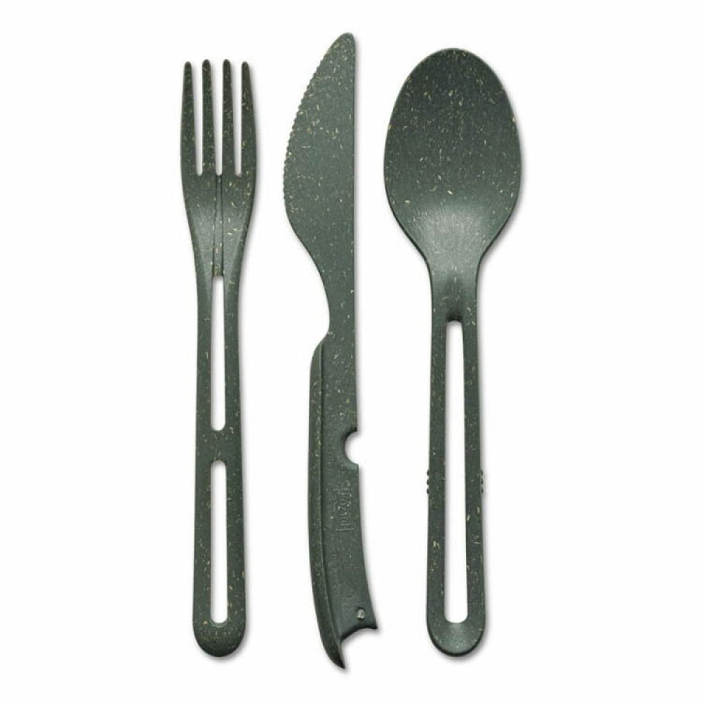 Komplett bestickset med en rejäl kniv, gaffel och sked som är finurligt hopsatta i varandra. Picknickbestickens behändiga storlek gör dem perfekta att ta med på picknicken, utflykten eller till stranden och andra utomhusmåltider.