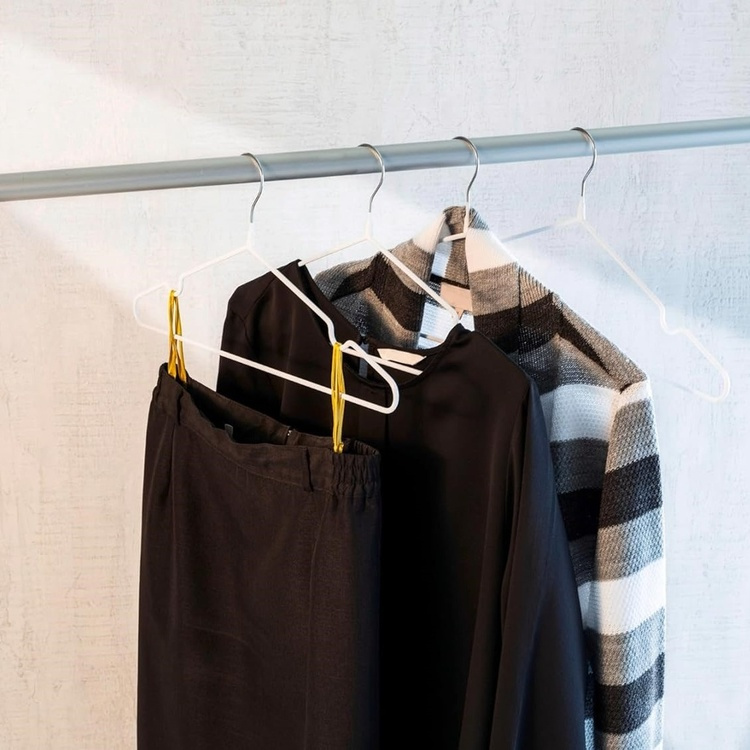 Lätta och tunna galgar i en platsbesparande och modern design.