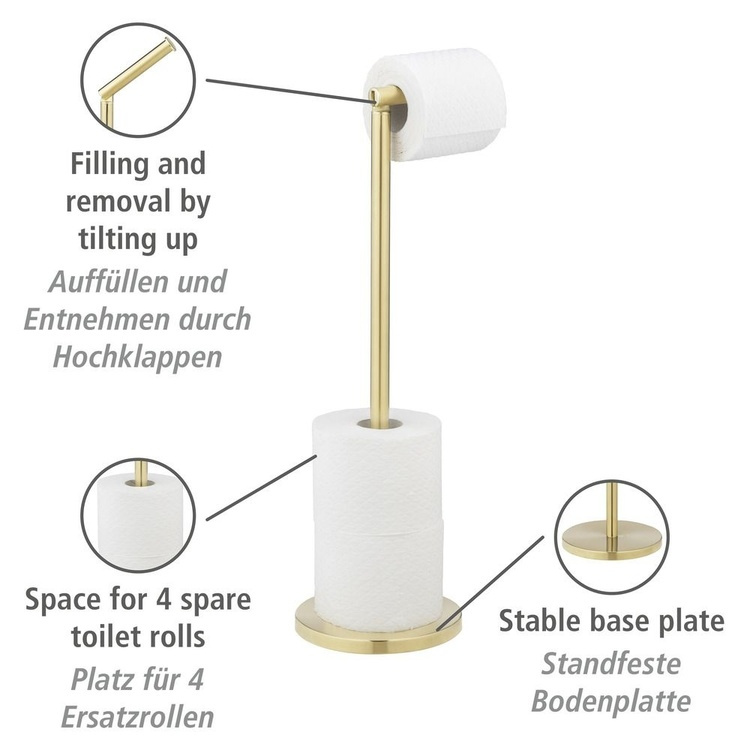 Platsbesparande hållare för toarullar, Metall, TWO IN ONE, H 55 cm, Guld