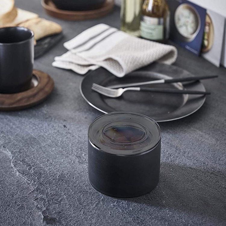 Porslinsburk med lock, YAMAZAKI TOWER SMALL CANISTER, Ø 10,5 x H 7 cm, Svart / Transparent