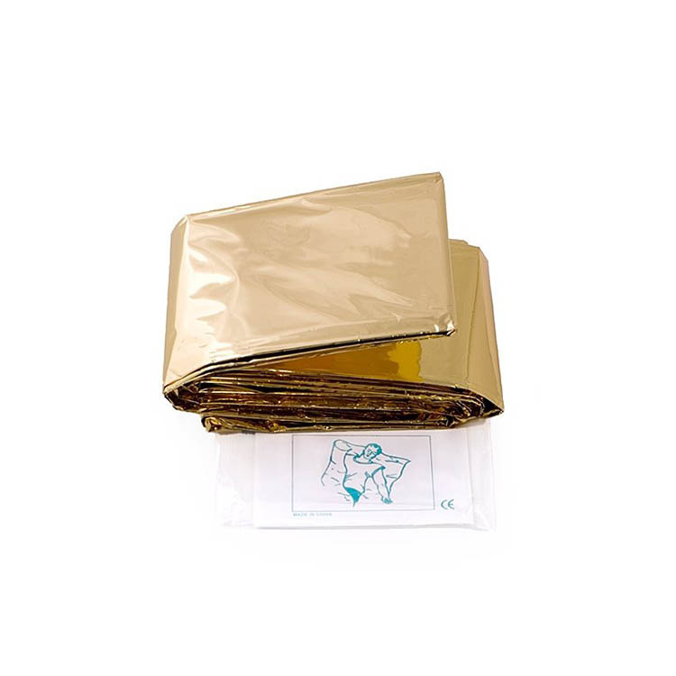 Räddningsfilten är silverfärgad på ena sidan och guldfärgad på andra.