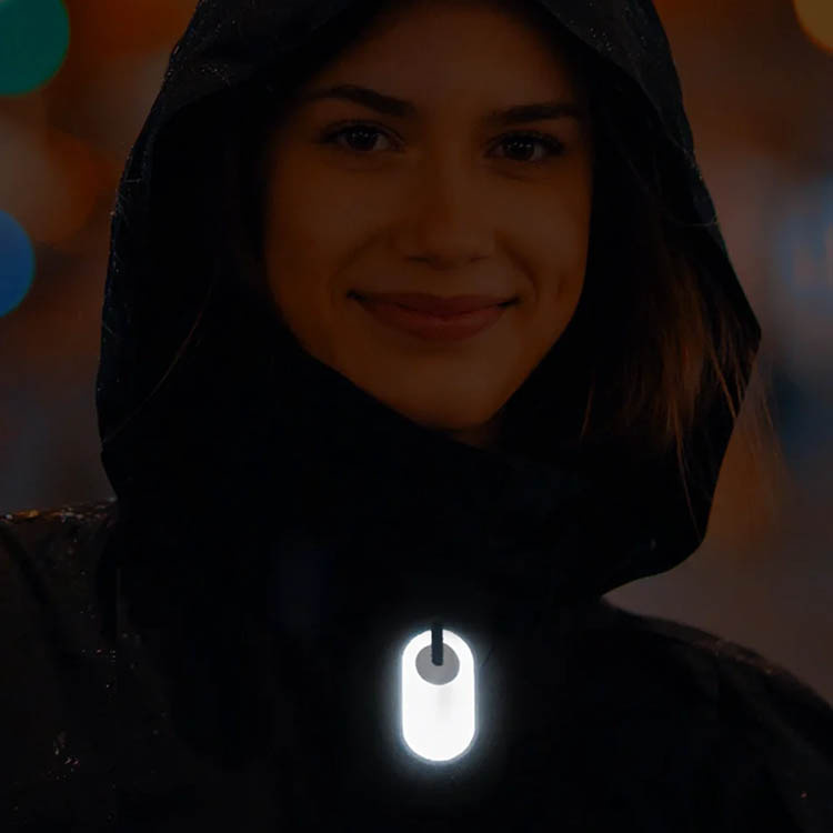 - Enkel att fästa på jacka, väska eller andra accessoarer