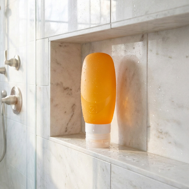 På baksidan av reseflaskan finns en sugkopp som gör att den enkelt kan fästas på duschväggar, kakel eller andra släta ytor. Detta är särskilt praktiskt i duschen, där du kan använda flaskan utan att behöva hålla i den.Tål diskmaskin