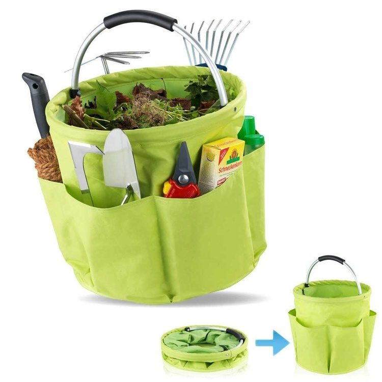 Rund korg med förvaringsfickor, Superlätt, UNIVERSAL CADDY XL, Ø 35 x H 35 cm, Limegrön