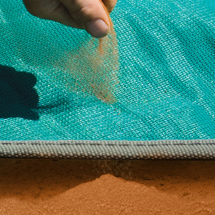 Ställ av er skorna och torka av fötterna på mattan innan ni går in i husvagnen. Campingmattan består av två lager väv. Det översta lagret silar igenom sanden och det undre lagret ser till att sanden stannar kvar under mattan. Tyngden från campingmattan och det robusta materialet stabiliserar dessutom det sandiga underlaget. Det gör att den sandfria mattan även är bra att lägga under campingstolar och bord.