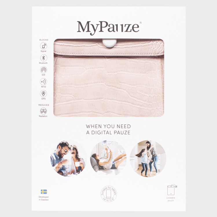 Den signalblockerande iPadväskan från svenska MyPauze är ett låsbart fodral som du förvarar din surfplatta i när du vill ta en digital paus. Väskan blockerar sms, samtal, WiFi, Bluetooth och GPS-signaler och gör att du kan fokusera på nuet istället för att bli störd av vibrationer eller pling från notifikationer.