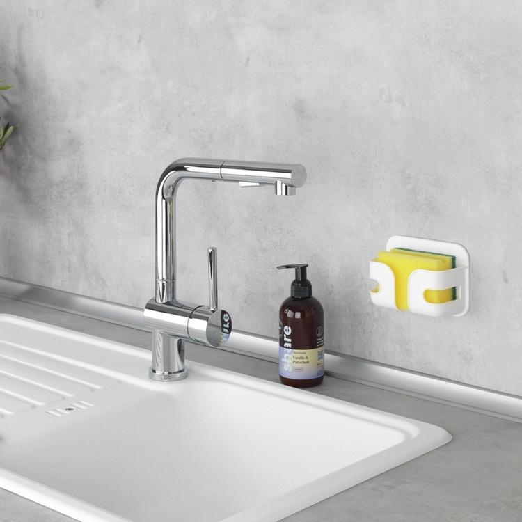 Självhäftande hållare för disksvamp, SOYO, 12 x 6 x H 9 cm, Vit
