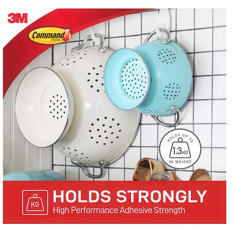 Självhäftande krokar, Avtagbara, 2 st, COMMAND MEDIUM, 2,9 x H 7,9 cm, Vit