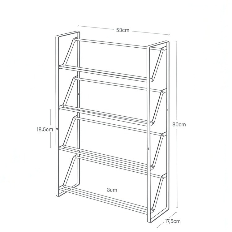 Skohylla i metall, Smal, FRAME 4 TIERED, 53 x17,5 x H 80 cm, Yamazaki