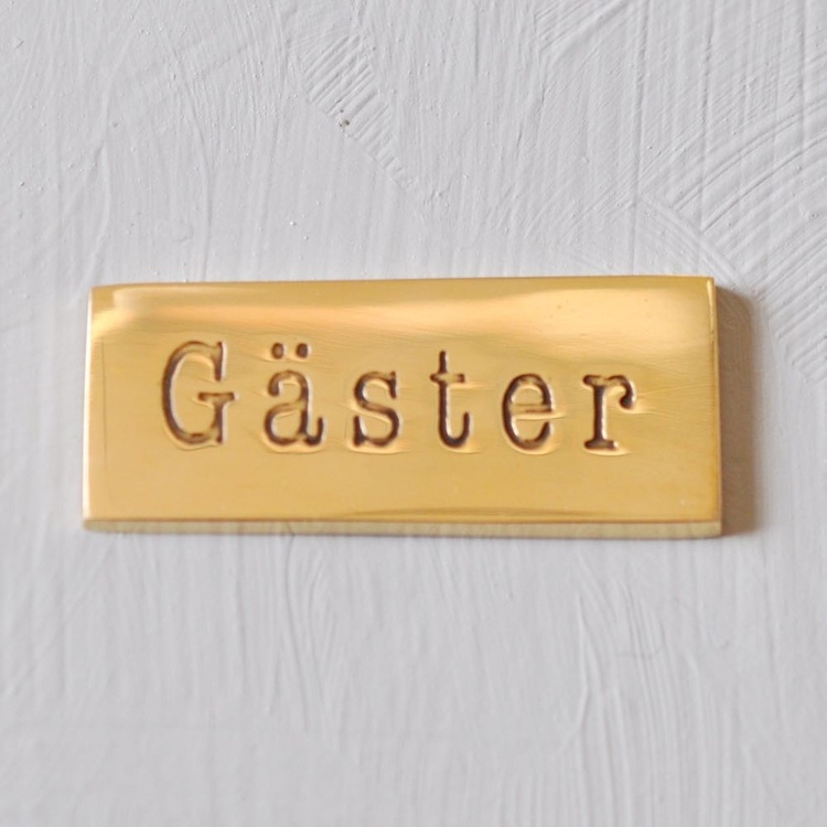 Skylt, GÄSTER, 4,8 x H 2 cm, Exmez, Polerad Mässing