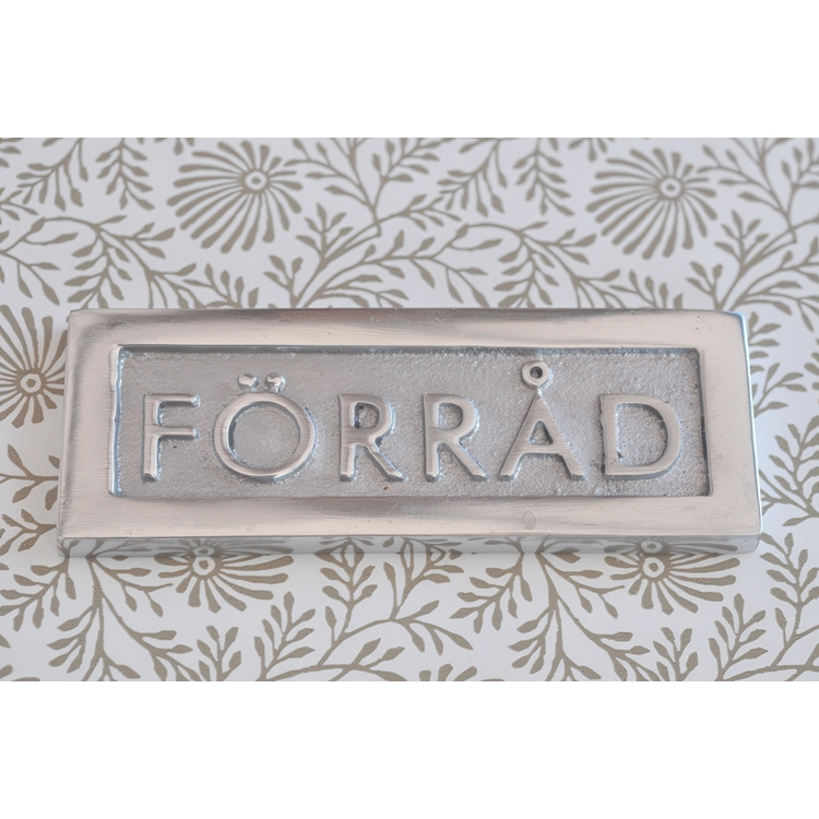 Skylt med ram, FÖRRÅD, 8,5 x H 3 cm, Exmez, Sandgjuten aluminium