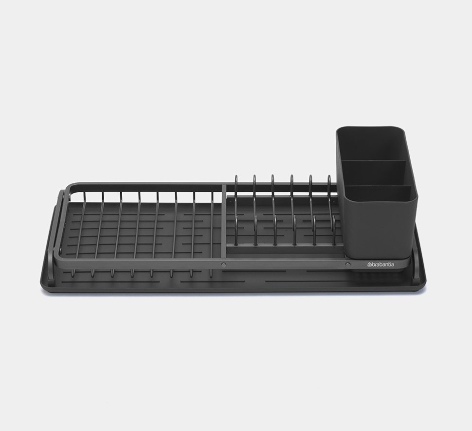 Brabantia Compact är tillverkat i vit pulverlackerad metall som både ser snyggt ut och håller länge. Den avtagbara bestickkorgen gör det enkelt att sortera bestick och hålla ordning. Droppbrickan samlar upp vattnet och kan även användas som en fristående torkmatta om man föredrar det.