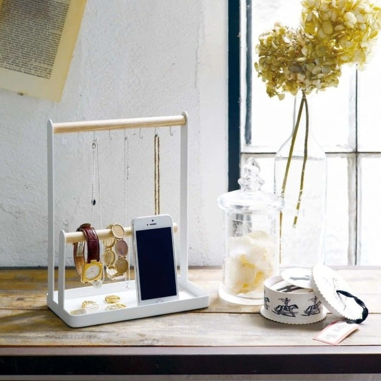 En smyckes & accessoarer stativ från Yamazaki. Se till att hålla dina armband, halsband, ringar, klockor och glasögon organiserade. En bricka längst ner för små föremål som ringar och klockor. -