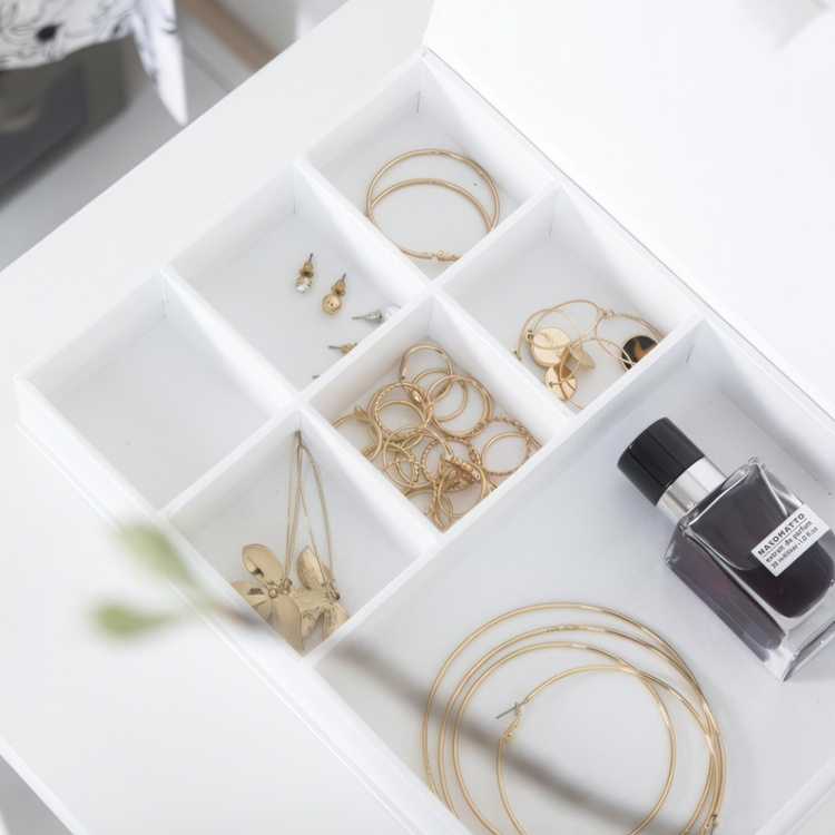 Smyckesask med 7 fack, magnetlås, BIGSO JOLIE, 26,5 x 19 x H 5 cm, Vit