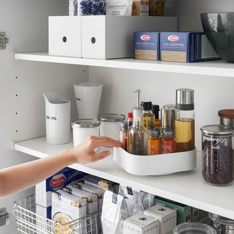 Med en snurrbricka blir sakerna du förvarar lättillgängliga. Med ett snurr får du snabbt fram det som står längs bak. Du sparar dessutom utrymme i ditt skafferi eller skåp.