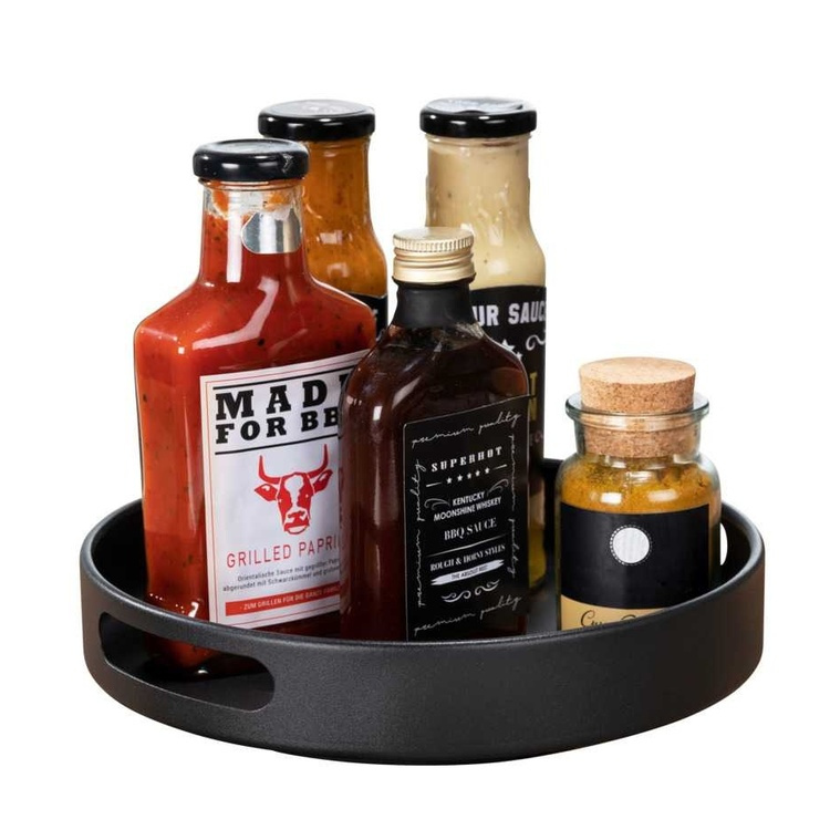 Snurrbricka i metall, Hög kant med handtag, ROTATING TRAY, Ø 26 x H 6 cm, Svart