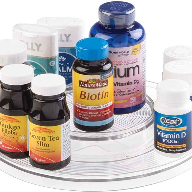 Med en snurrbricka får du lätt överblick över kryddburkar, medecinburkar, sminkburkar mm. Den här brickan är upphöjd på mitten vilket gör att du ser ännu bättre vad du