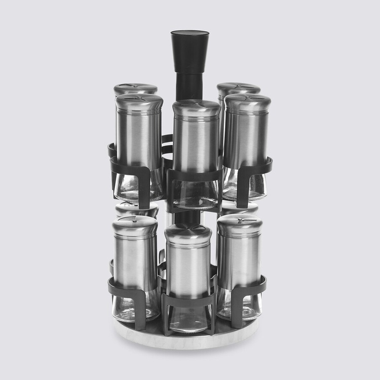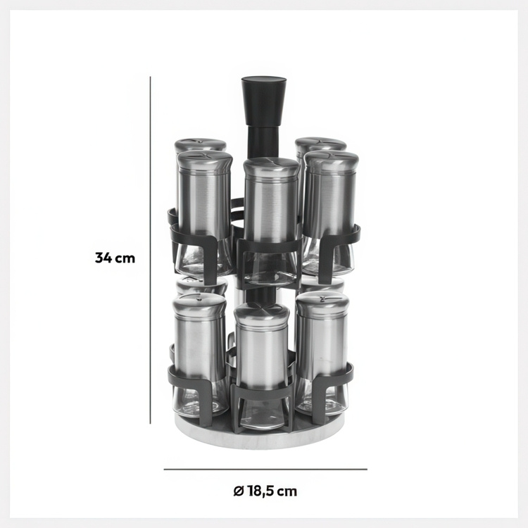 Snurrställ för Kryddor, 12 burkar, REVOLVING SPICE RACK, Ø 20 x H 34,2 cm , Grå / Silver / Klar