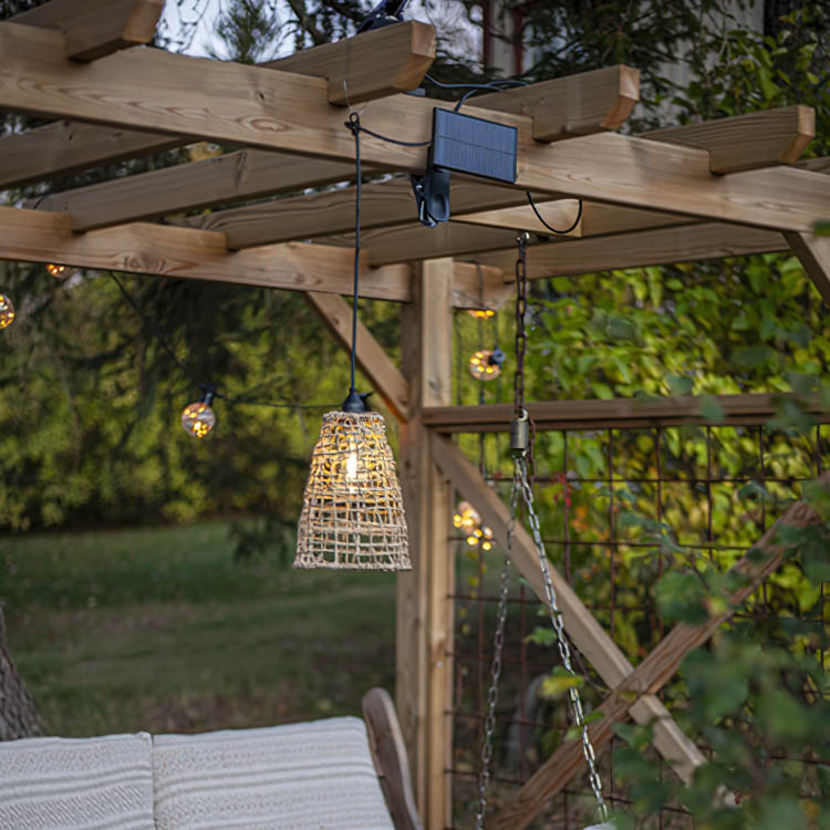 Eftersom du själv kan välja lampskärm får du full frihet att ge lampan ett unikt uttryck, så länge öppningen är max 47 mm. Kombinera flera lamphållare i träd för en festlig känsla, eller häng en ensam lampa i ett hörn av altanen för ett stilrent intryck. Du kan även använda lamphållaren i växthus, pergola eller uterum – alla platser där du vill ha dekorativ belysning men saknar eluttag.Specifikationer