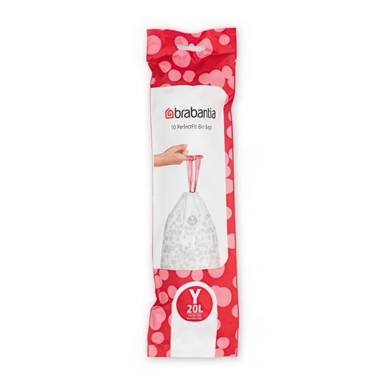 Soppåsar med dragband, 20 L, 10 st, BRABANTIA BIN LINERS CODE Y, Vit / Röd