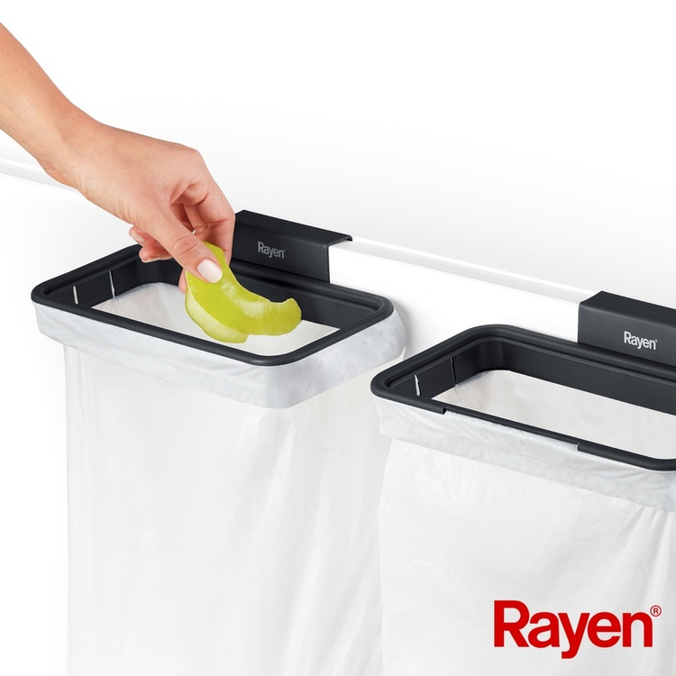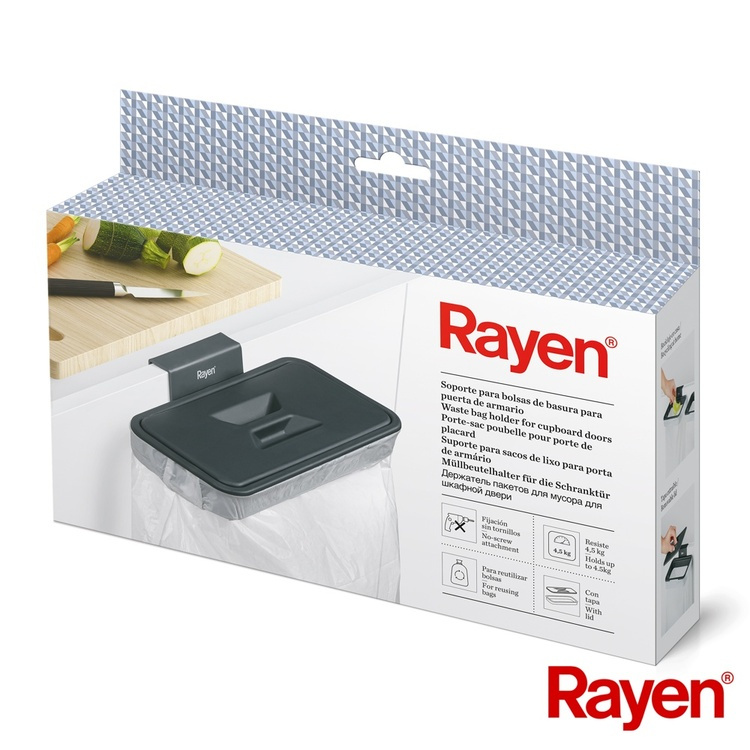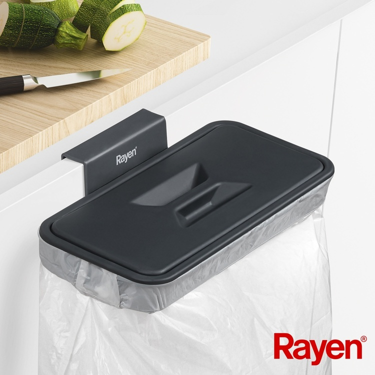 Soppåshållare för över skåpdörr, med lock, SOPORTE PARA BOLSAS, Mörkgrå