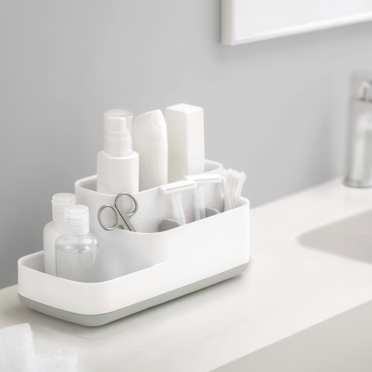 En praktisk badrumscaddy med olika fack så att du kan hålla dina hygienprodukter på plats och lätta att hitta när du behöver dem.