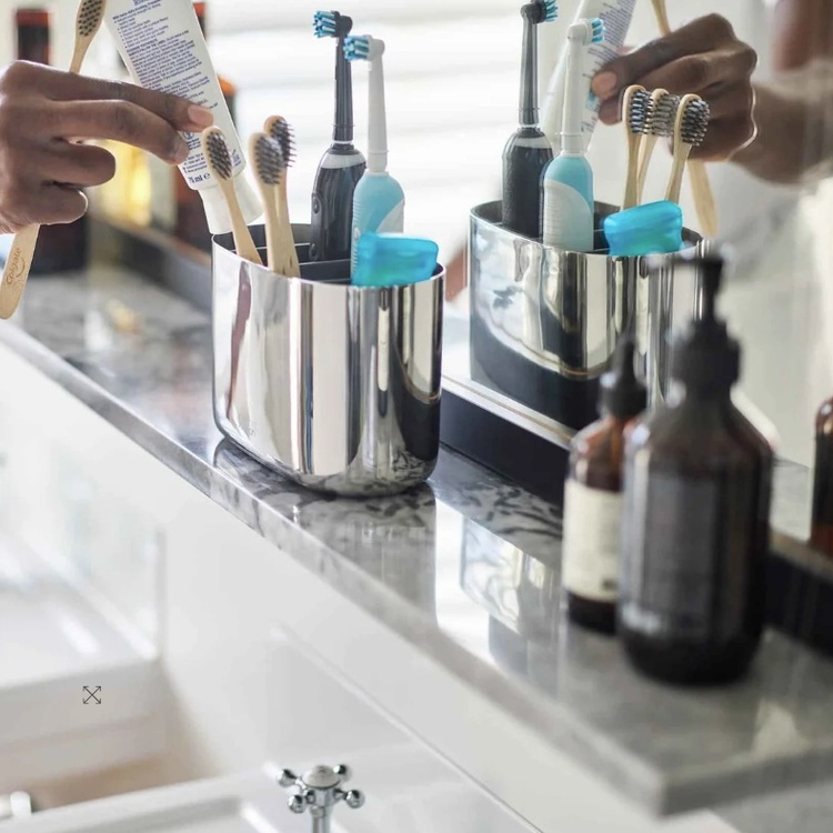 Lyx i badrummet! Tandborstförvaring i rostfritt från Joseph Joseph.