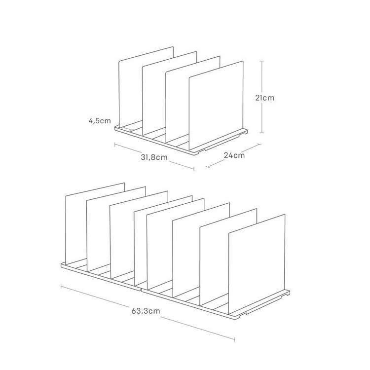 Placera på en hylla och avpassa avdelarna efter ditt behov.