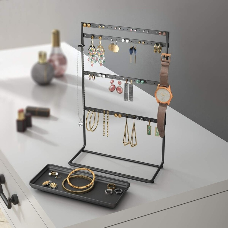 Med detta smyckesställ behöver du inte längre leta efter dina favoritörhängen eftersom du kan förvara dem överskådligt. Stället har plats för upp till 42 par örhängen.