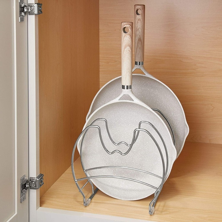 Förvara dina stekpannor snyggt och lättåtkomligt i det här stället i metall.