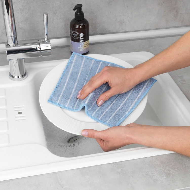 Du behöver inte använda rengörningsmedel. Trasorna rengör bra ändå.