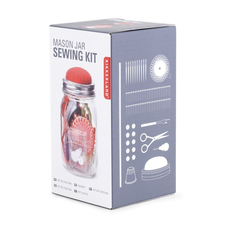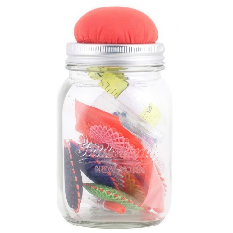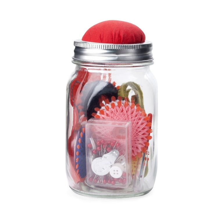Sybehör i glasburk, MASON JAR SEWING KIT, Kikkerland, Klar / röd