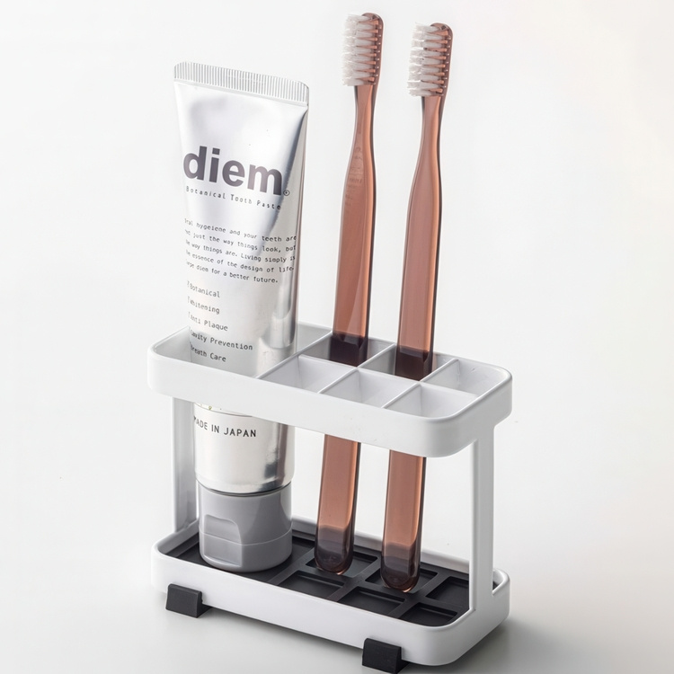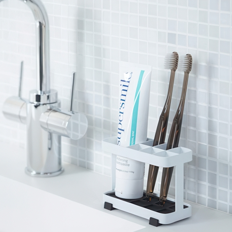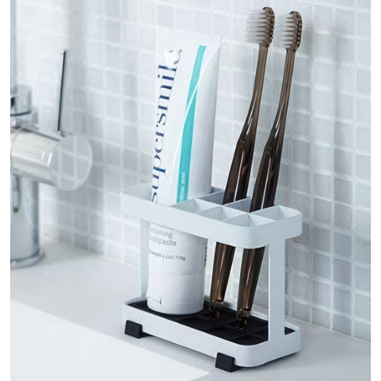 Tandborsthållare i metall med plats för tandkräm, YAMAZAKI TOWER, 11 x 5 x H 8 cm