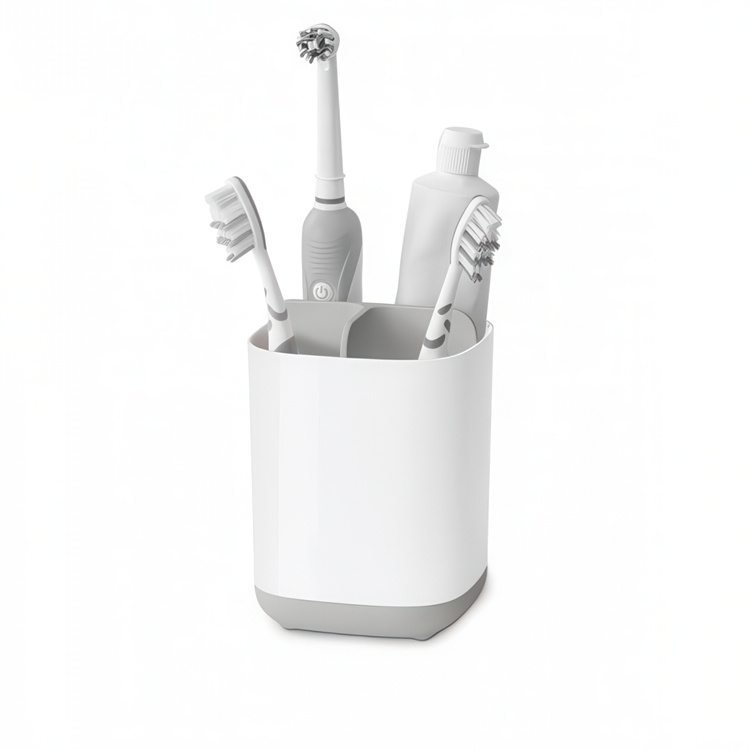 En praktisk tandborstmugg från Joseph Joseph med fack så att du kan hålla dina tandborstar på plats.