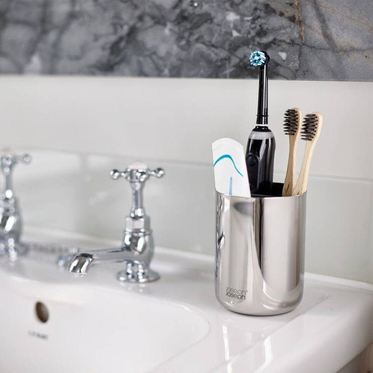 Tandborstmugg för eltandborstar, EASY STORE LUXE, Ø 9 x H 11,7 cm, Joseph Joseph, Rostfritt stål