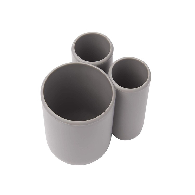Muggen TOUCH från Umbra har tre fack, ett för bulkiare föremål som t ex tandkrämstuben eller eltandborsten, och två mindre fack, för tandborstar.
